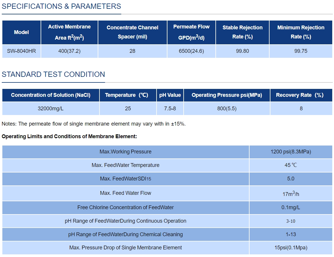 Sea Water Desalination Membrane Element-SW-8040HR